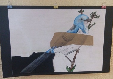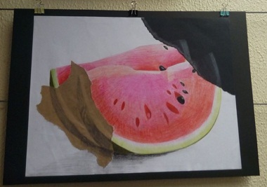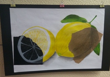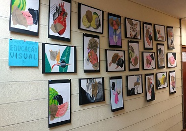 Representação e experimentação: cor e textura. Técnica mista. Exposição de trabalhos de Educação Visual, pelos alunos do 8º ano, da professora Catarina Santos