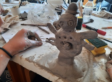 O ponto de partida foi a exposição "O Figurado de Rosa Ramalho na Coleção do Espanhol", realizada no Museu de Olaria em 2020. A partir daí, os alunos criaram peças inspiradas nas figuras tradicionais, aplicando técnicas e materiais diversos. Este exercício artístico serviu para explorar visualmente conceitos como o romântico, o popular, o masculino ou o artificial, com especial atenção à cor e à composição.